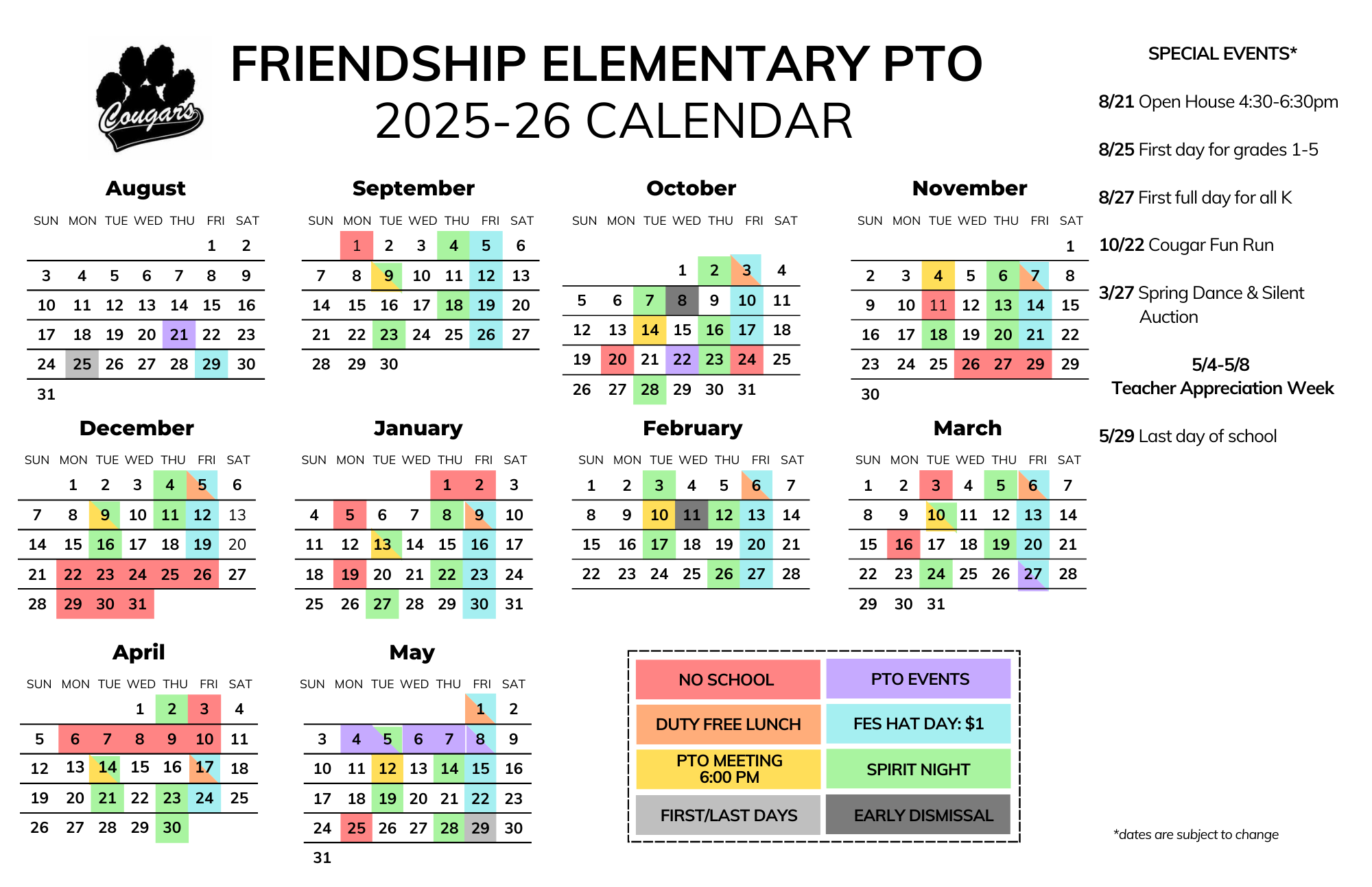 Visit any of the participating area restaurants below on one of our Spirit Nights, and a portion of the proceeds will come back to us to support the Friendship PTO!